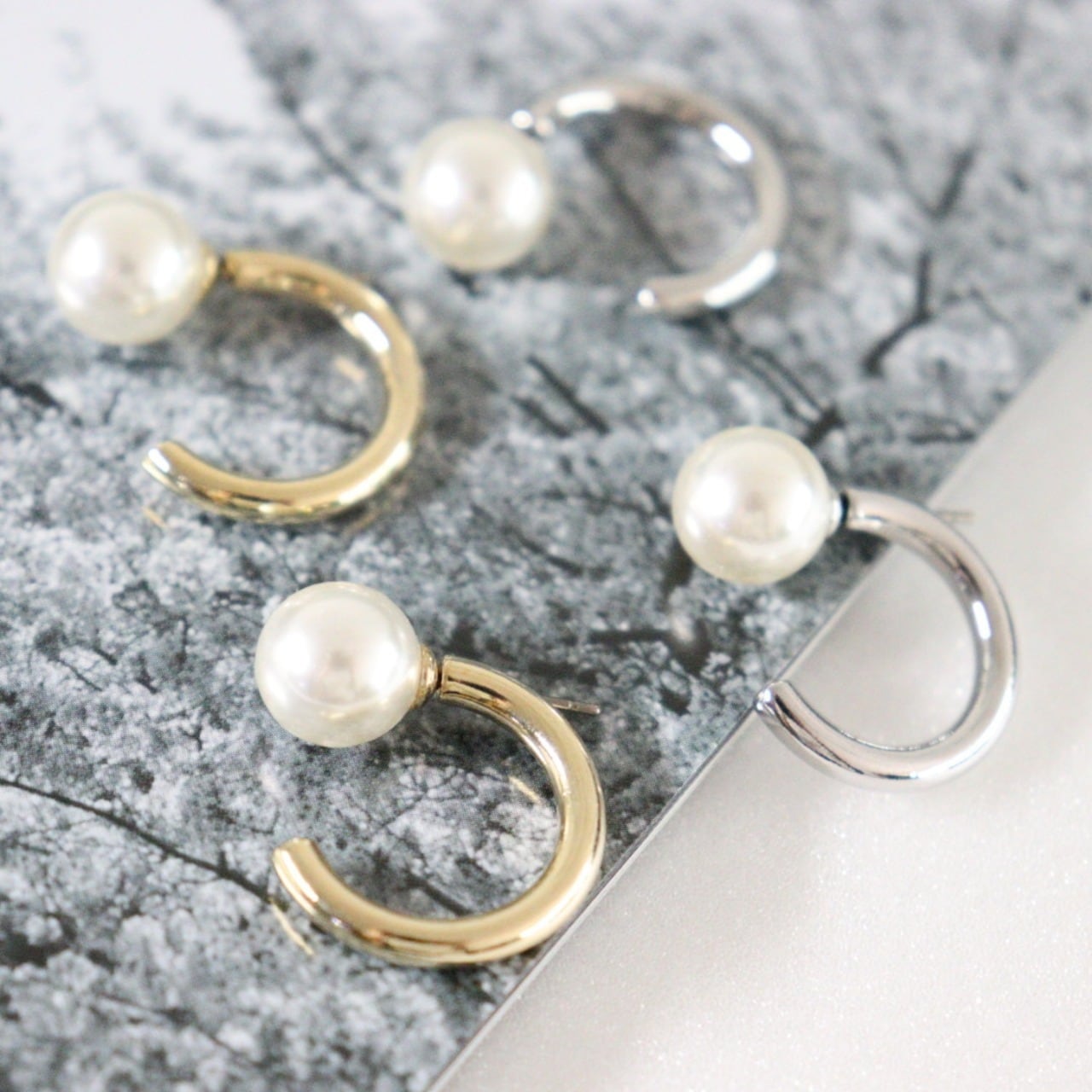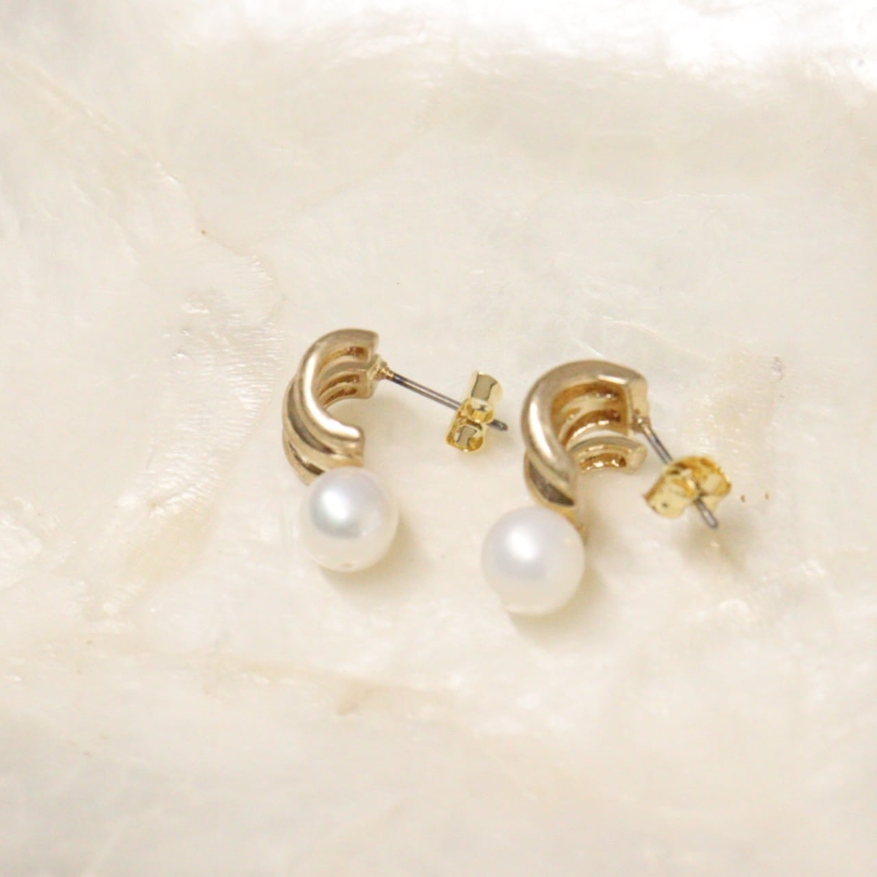 パールフープキャッチピアス チタンポスト使用 低アレルギー 2way プチプラ