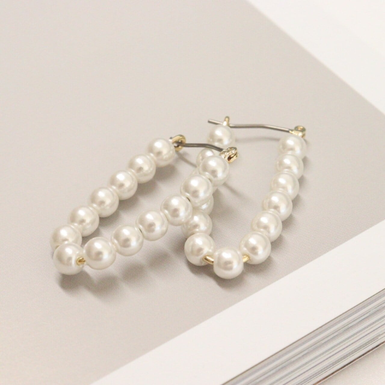 パールフーププチピアス 韓国デザイン GOLD 1.8㎝ 両耳用 軽い付け心地 ミニサイズのパールが一周付いたピアス 結婚式のゲストピアス