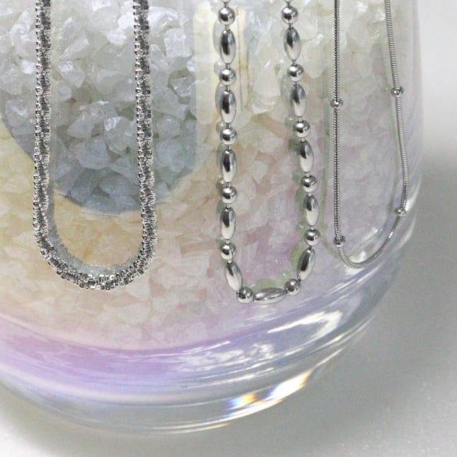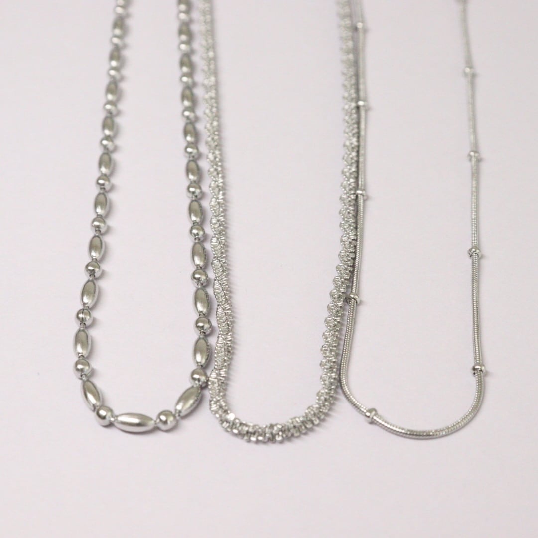 シンプルで洗練されたデザインが魅力のオールステンレスネックレス。