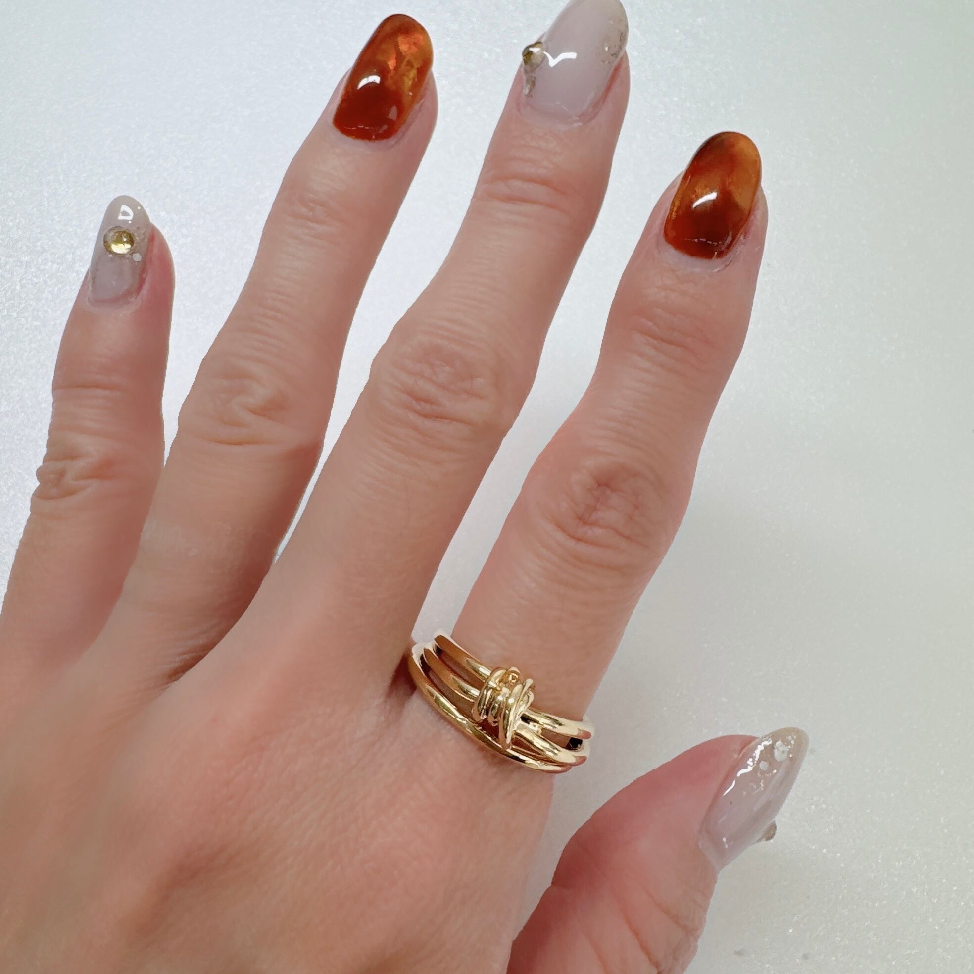 独自のノットデザインが指元に遊び心をもたらし、シンプルながらも存在感があります。