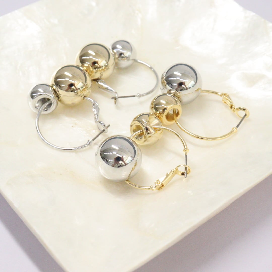 華やかさと遊び心を兼ね備えたダブルボールフープピアス。