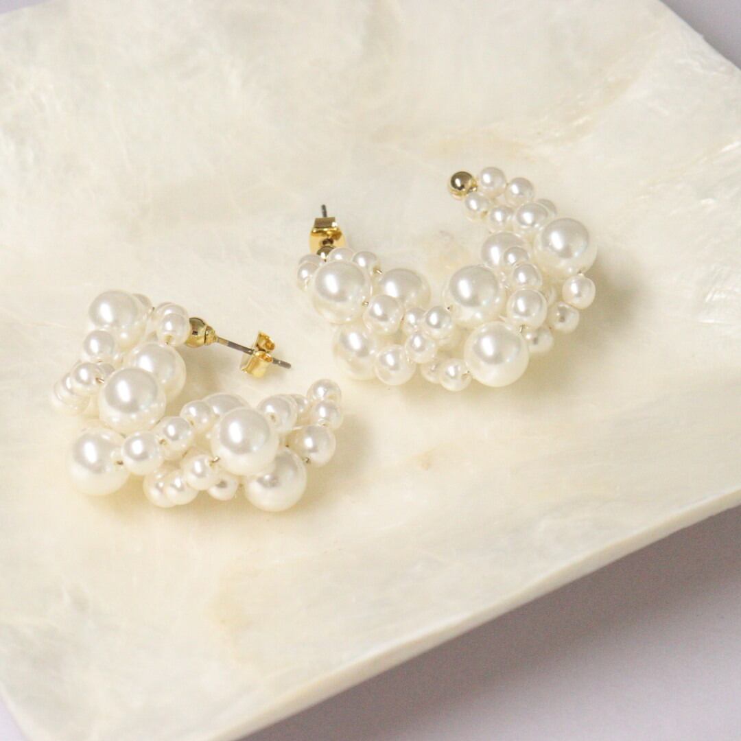 ツイストパールフープピアス ニッケルフリーポスト 低アレルギー 華やかデザイン パーティー ウェディング bittersweet