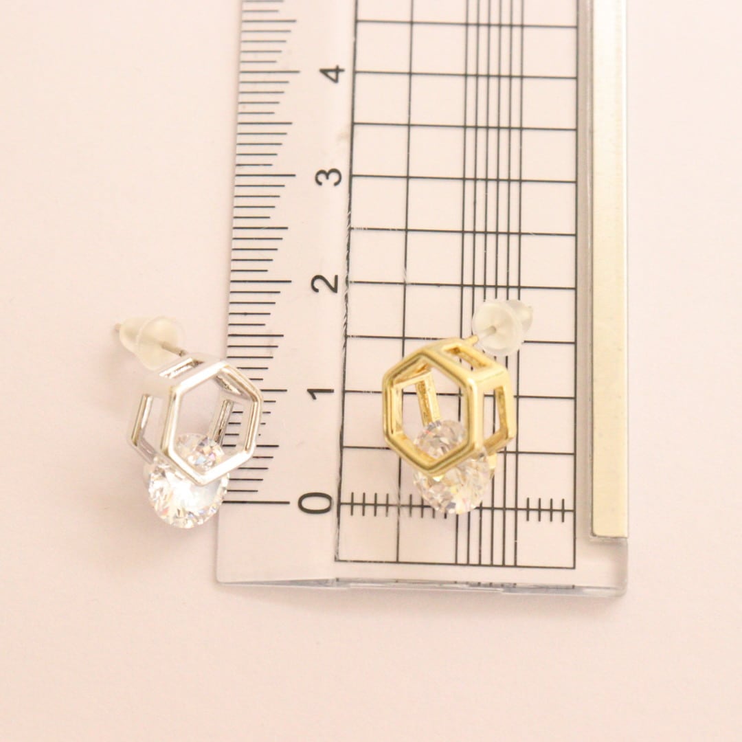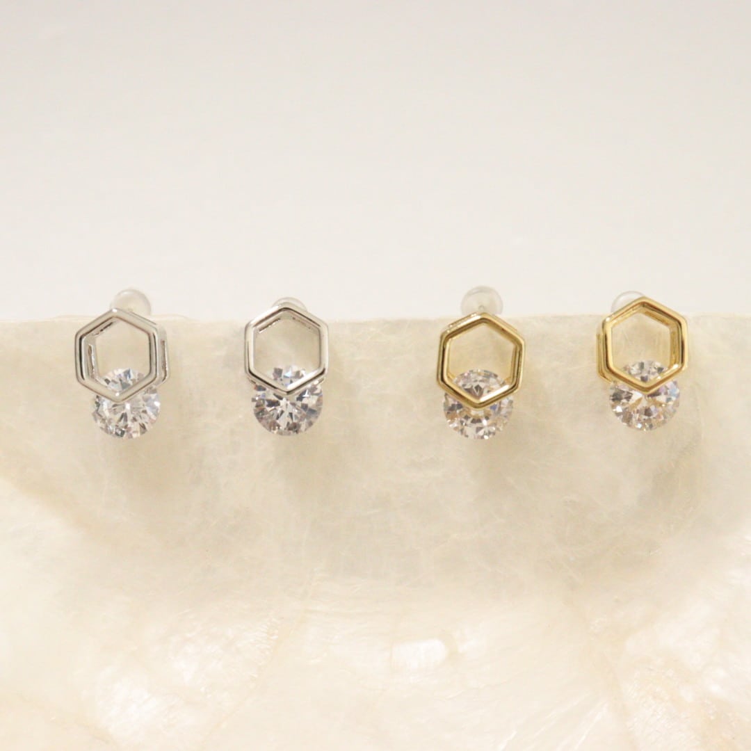 ヘキサゴンキュービックジルコニアピアス シルバー925ポスト 低アレルギー bittersweet