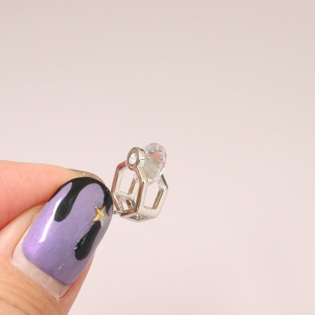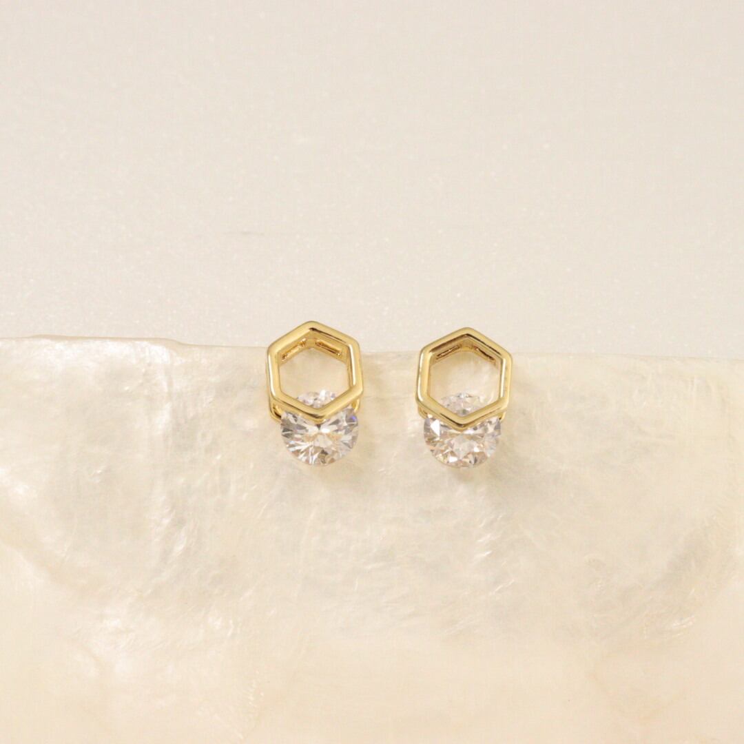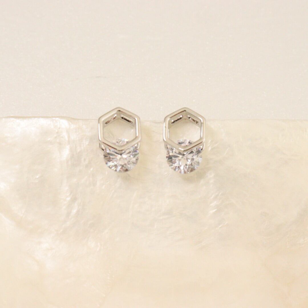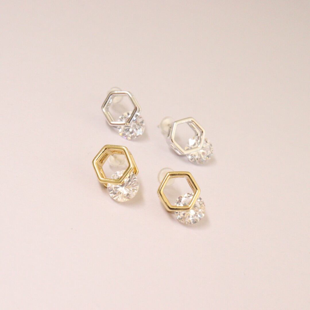 耳元で華やかに輝くヘキサゴンキュービックジルコニアピアス。