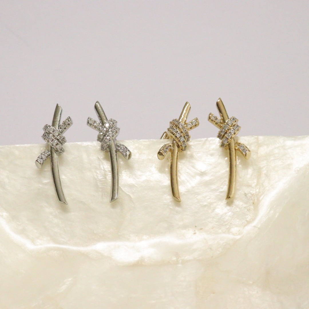 ノットラインストーンピアス ニッケルフリーポスト 低アレルギー bittersweet