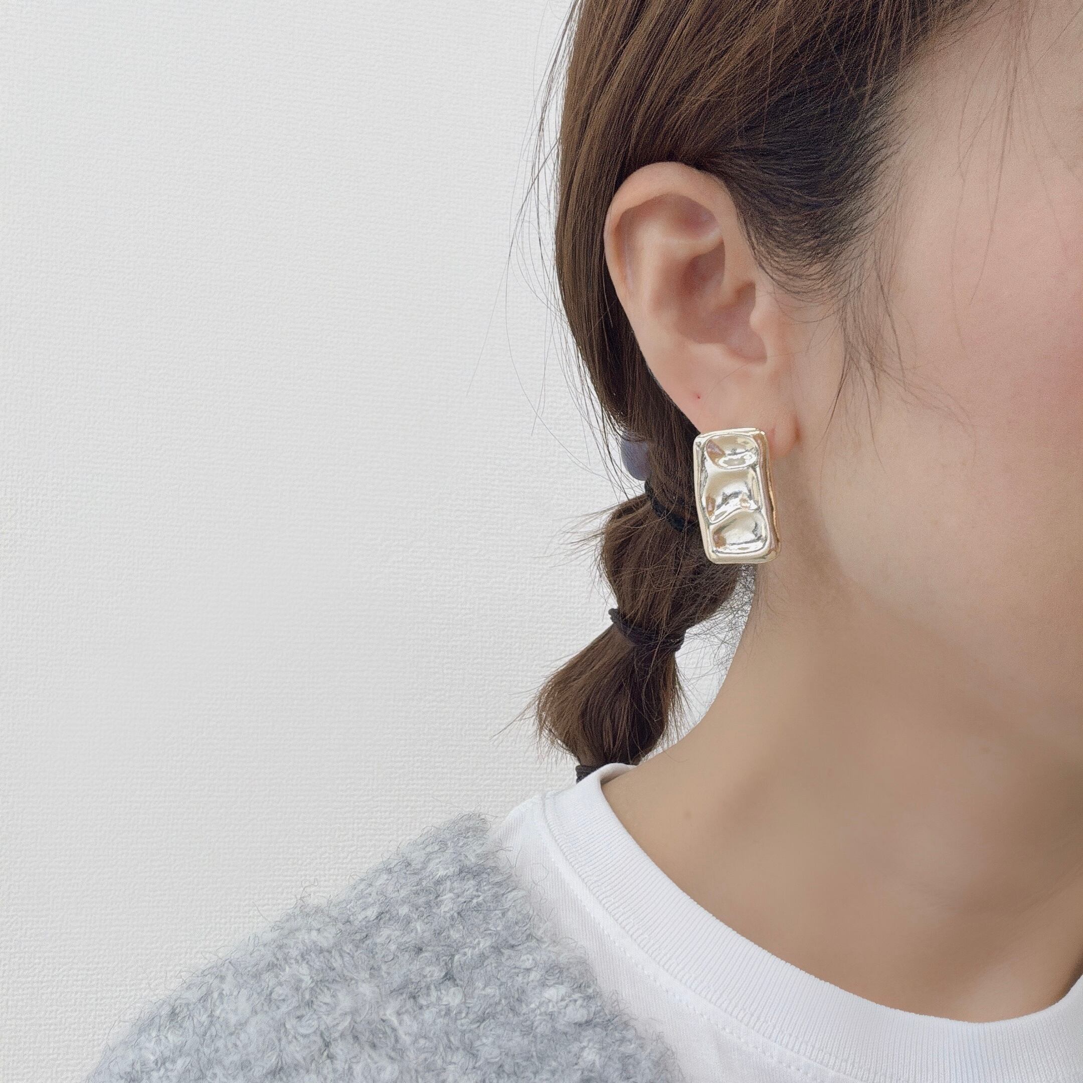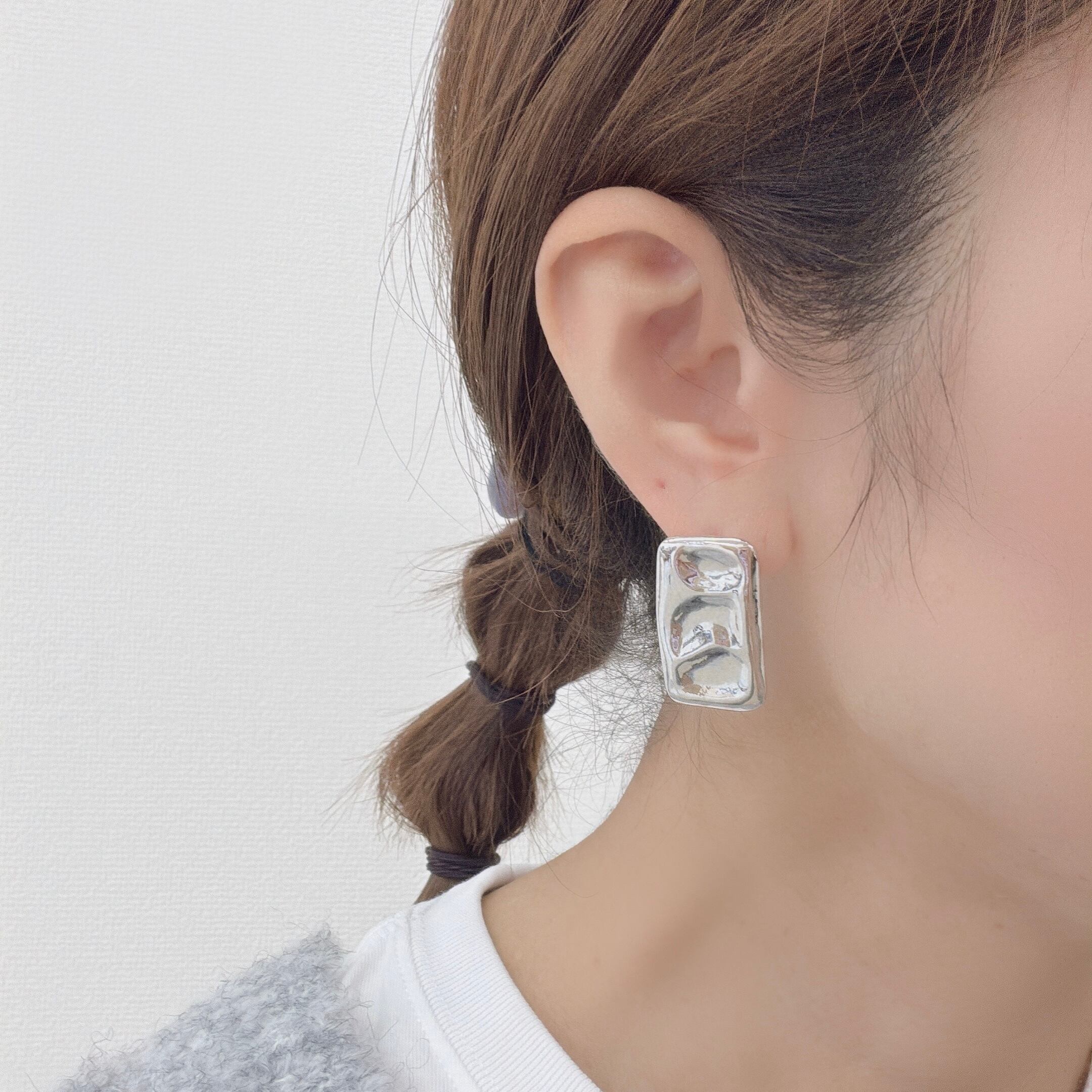 耳元でおしゃれに輝くスクエアプレートピアス。