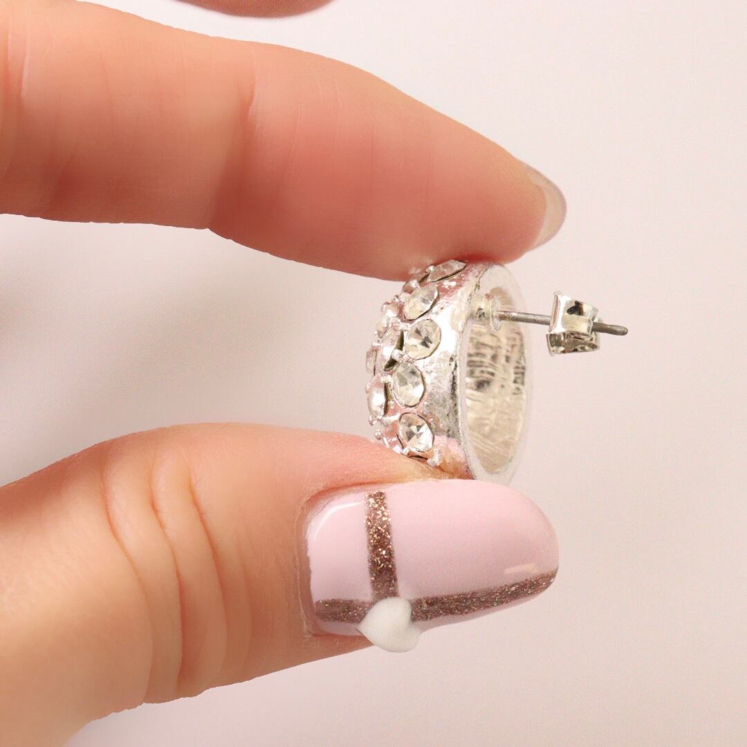 キラキラとしたビジューが施されたデザインは、シンプルでありながらも豪華な印象を与え、あなたのファッションに特別なアクセントをプラスします。