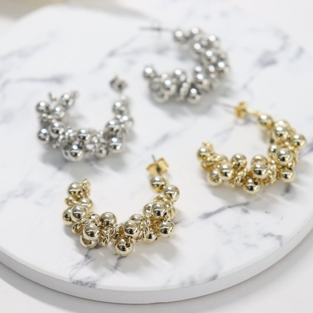 デザイン: このピアスは、韓国デザインの特徴を取り入れた、独特で個性的なデザインを持っています。つぶつぶモチーフが魅力的で、ゴールドとシルバーカラーの選択肢があります