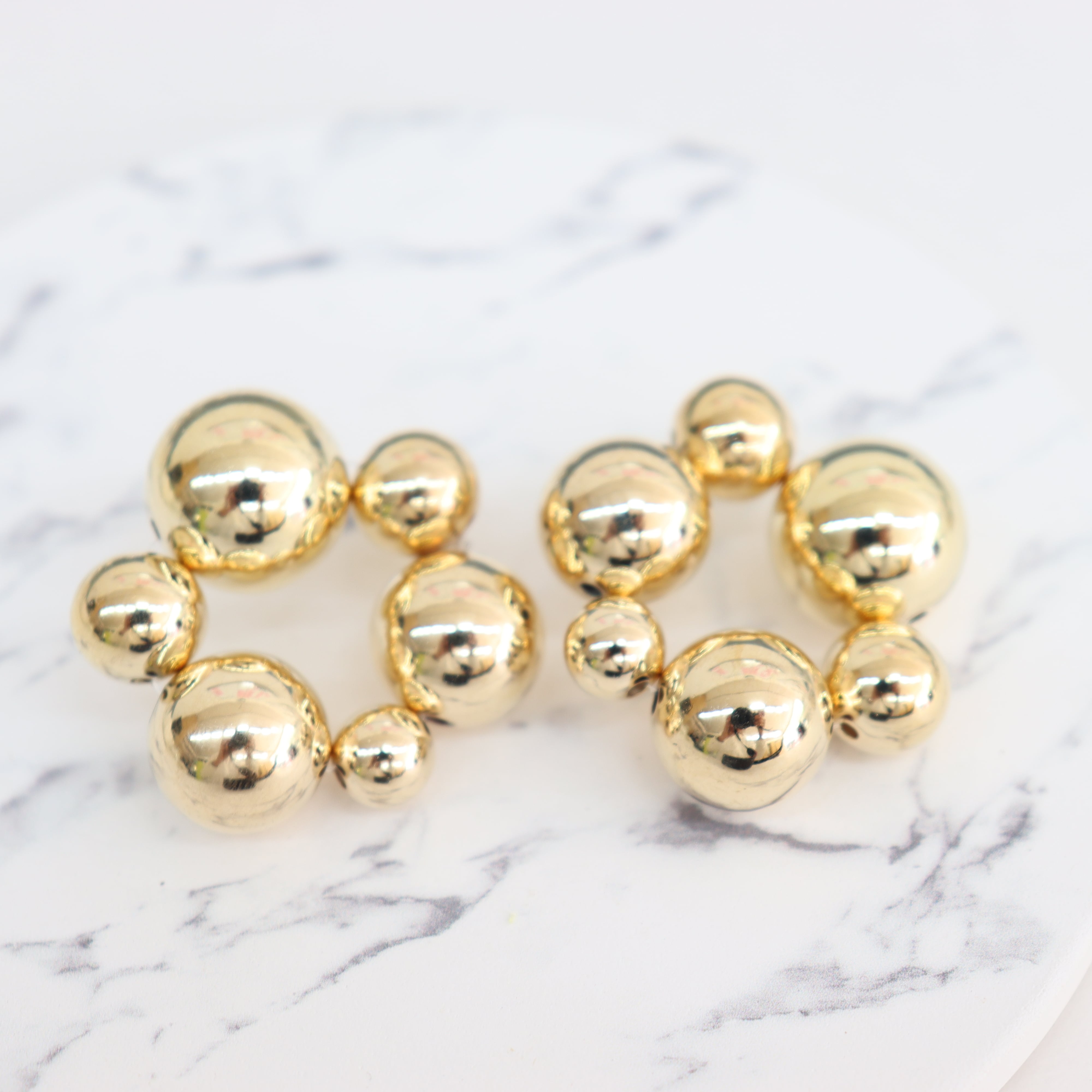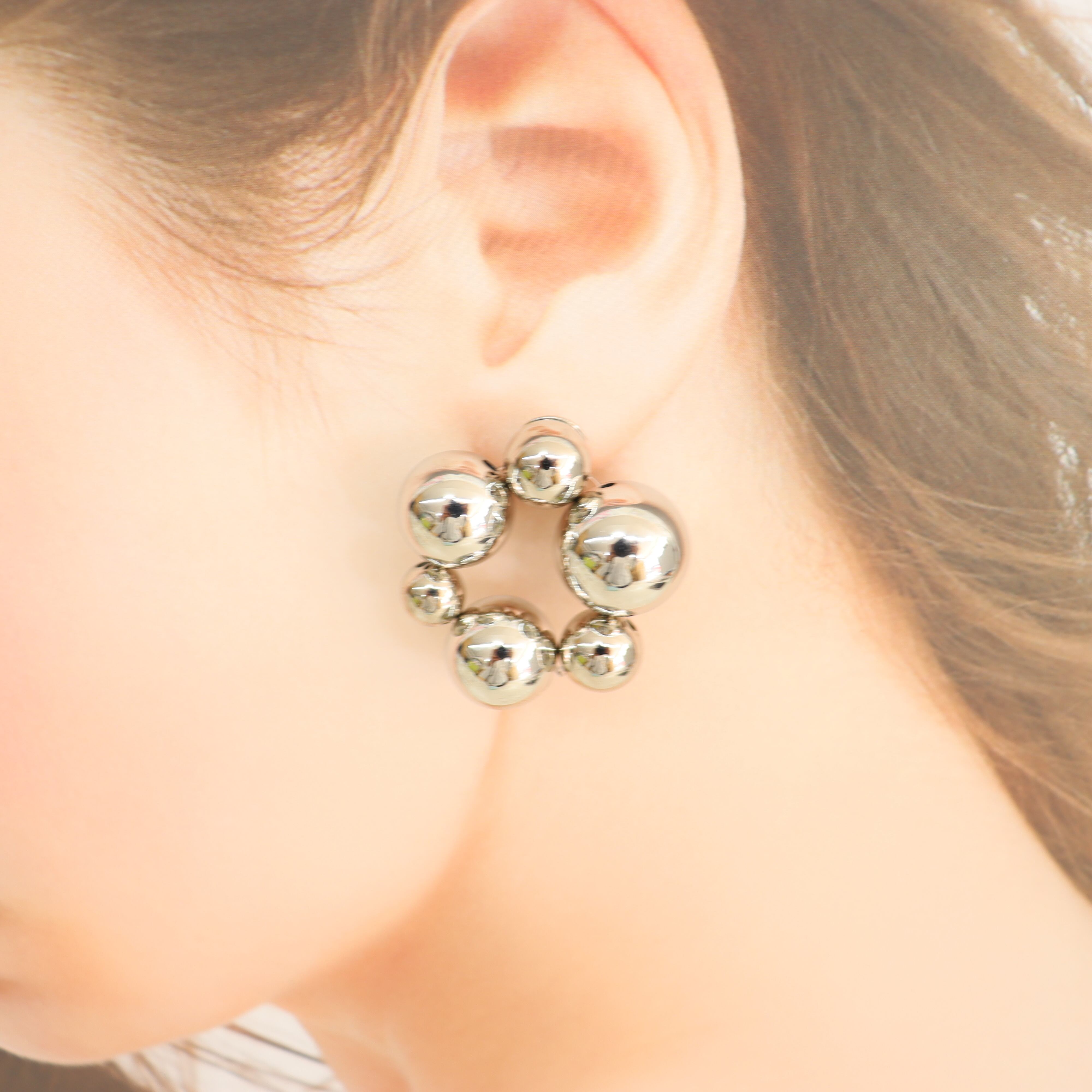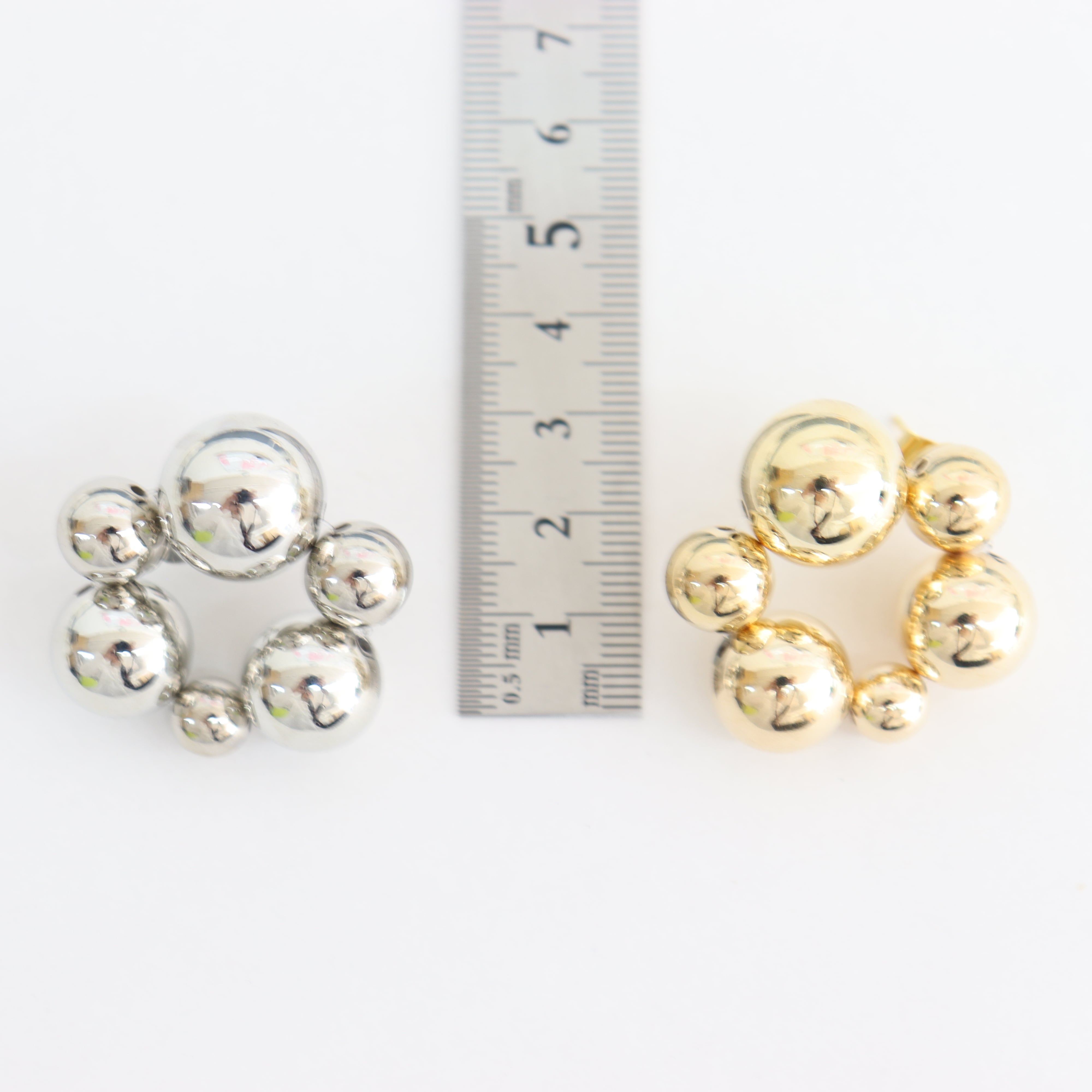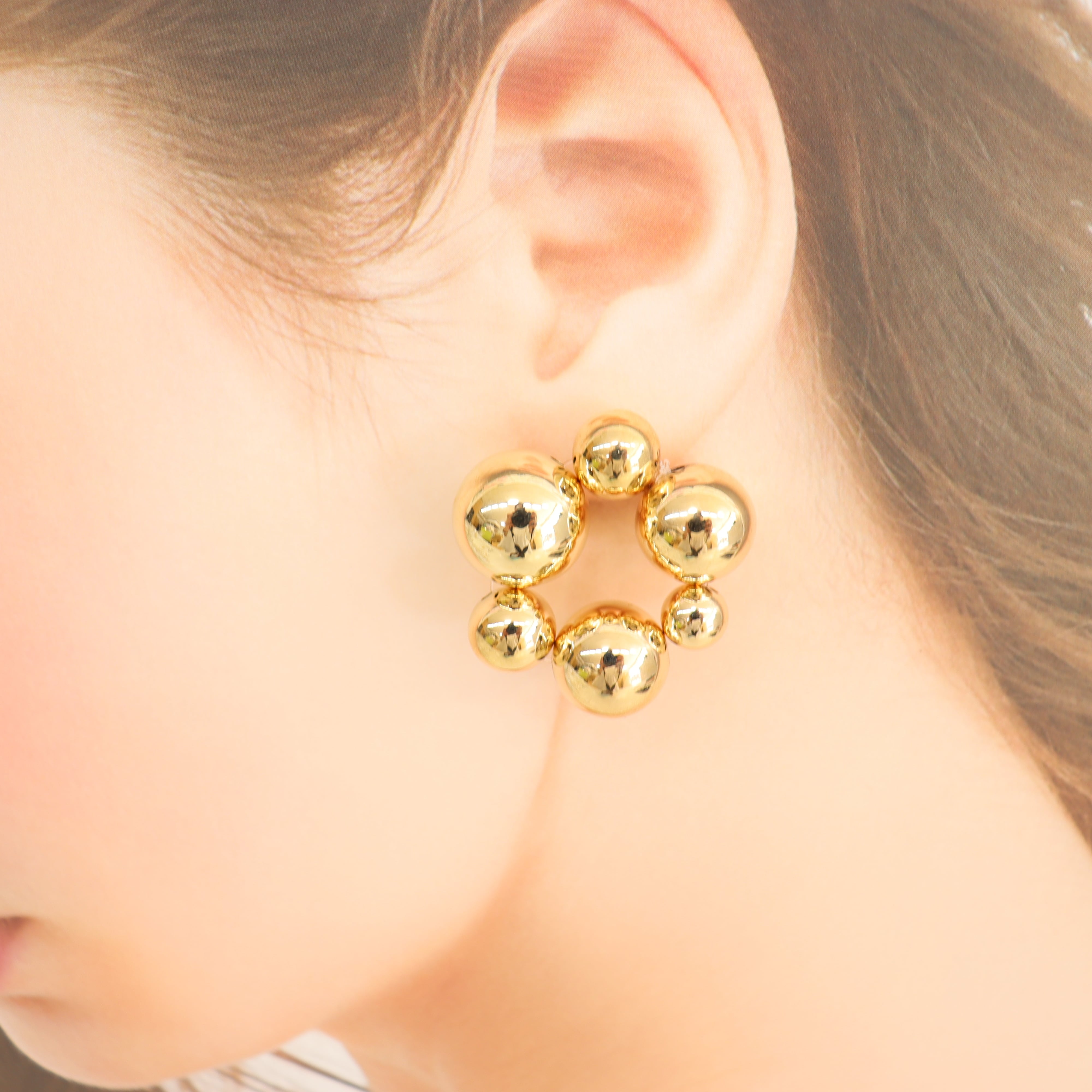 バブルリングピアス 韓国デザイン GOLD SILVER 3㎝ 両耳用 軽い付け心地 大小並んだ丸 結婚式のゲストピアス シンプルコーデ ランダムな丸のパーツデザイン bittersweet