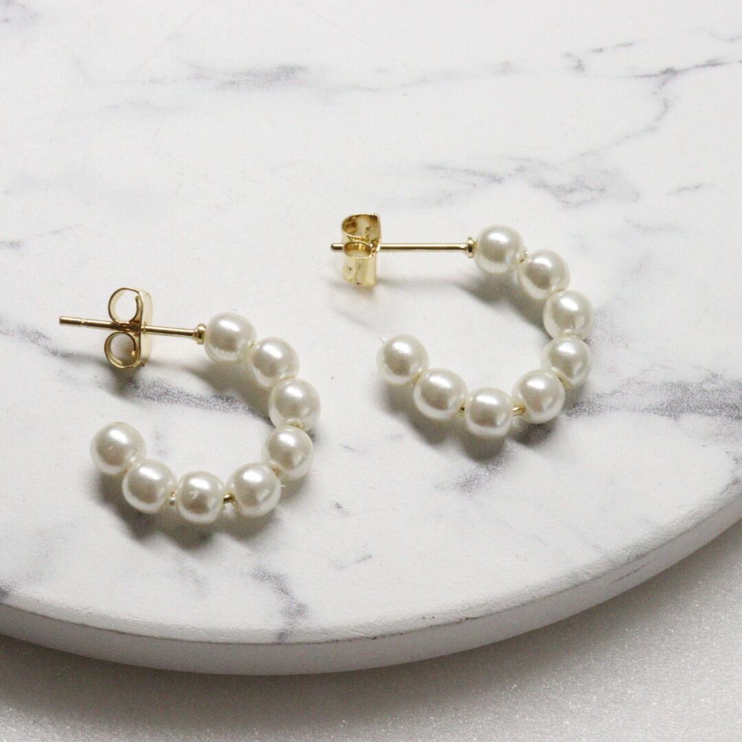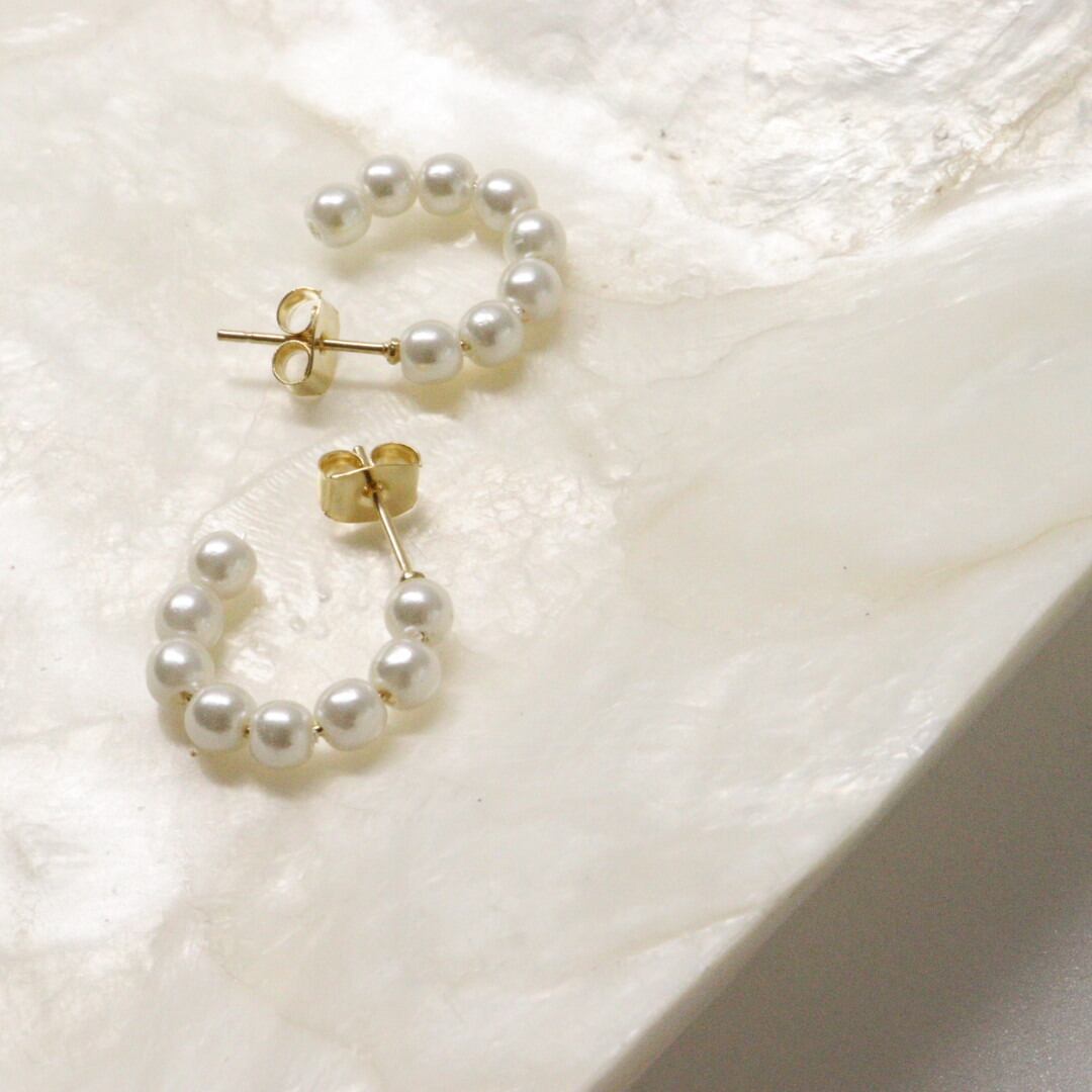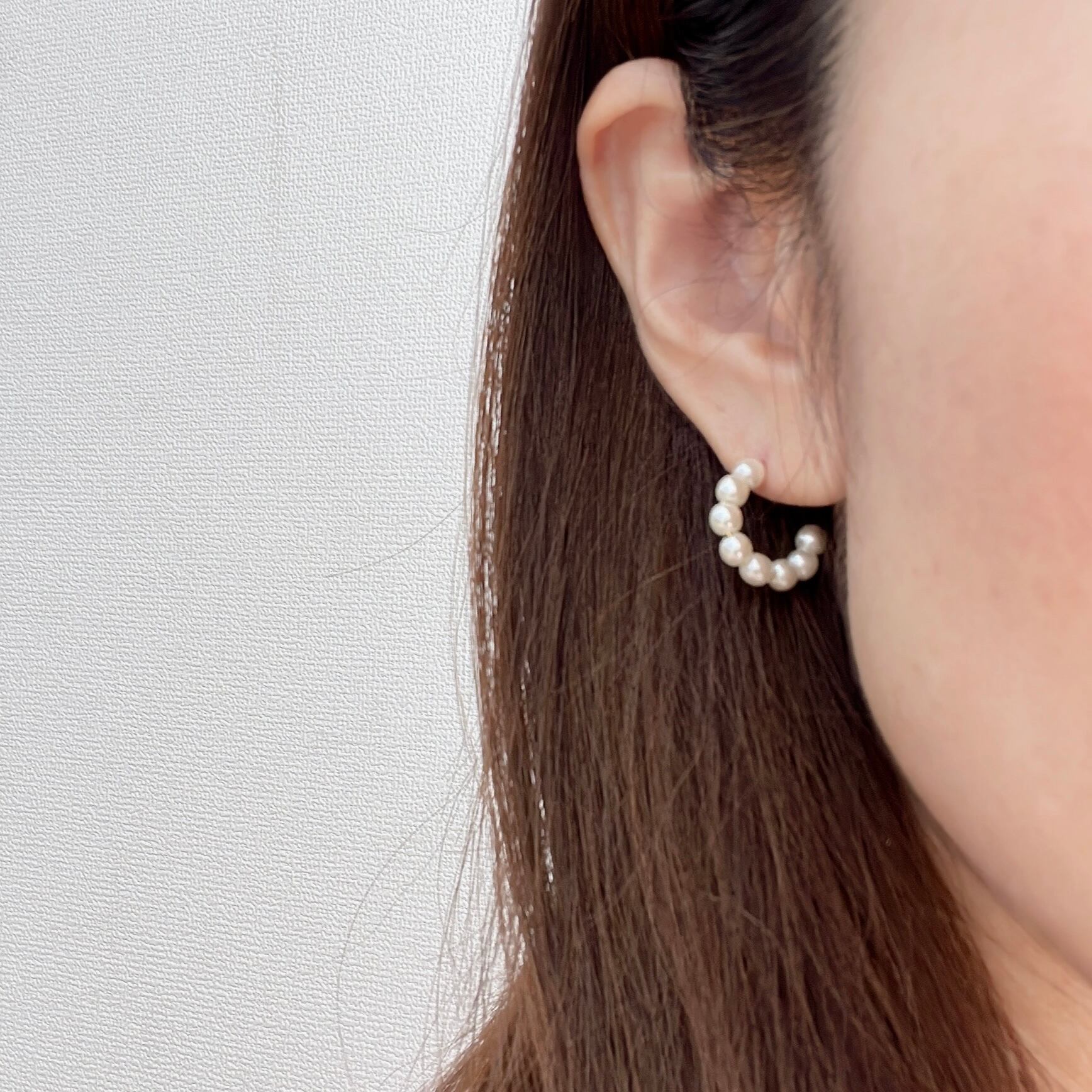 パールフーププチピアス 韓国デザイン GOLD 1.8㎝ 両耳用 軽い付け心地 ミニサイズのパールが一周付いたピアス 結婚式のゲストピアス bittersweet