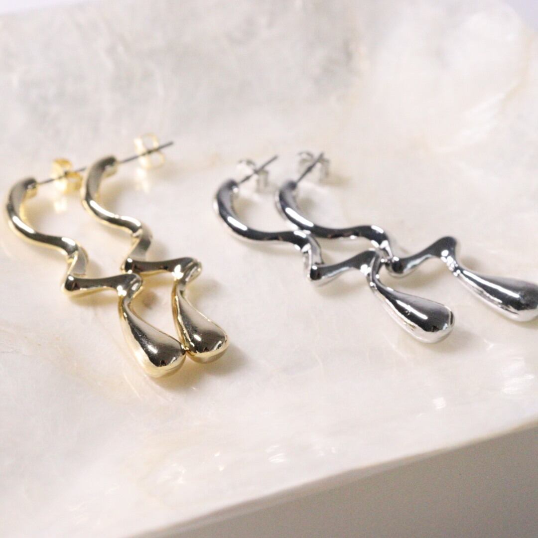 自然の美しさを感じる波の流れをイメージしたこのピアスは、あなたのファッションにアクセントを加えます。