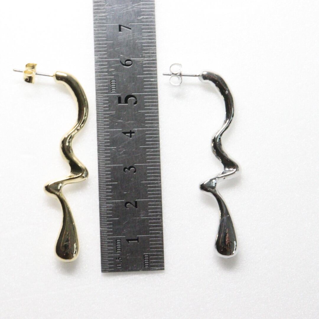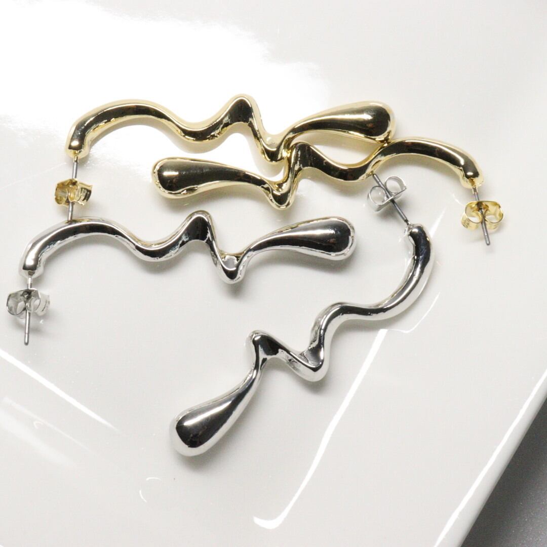 低アレ対応 ウェーブピアス 韓国デザイン GOLD SILVER 両耳 ニッケルポスト 5センチ シンプルデザイン bittersweet