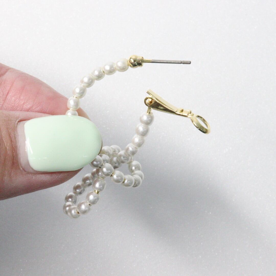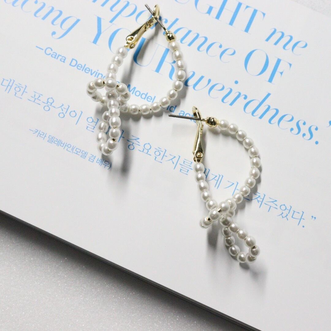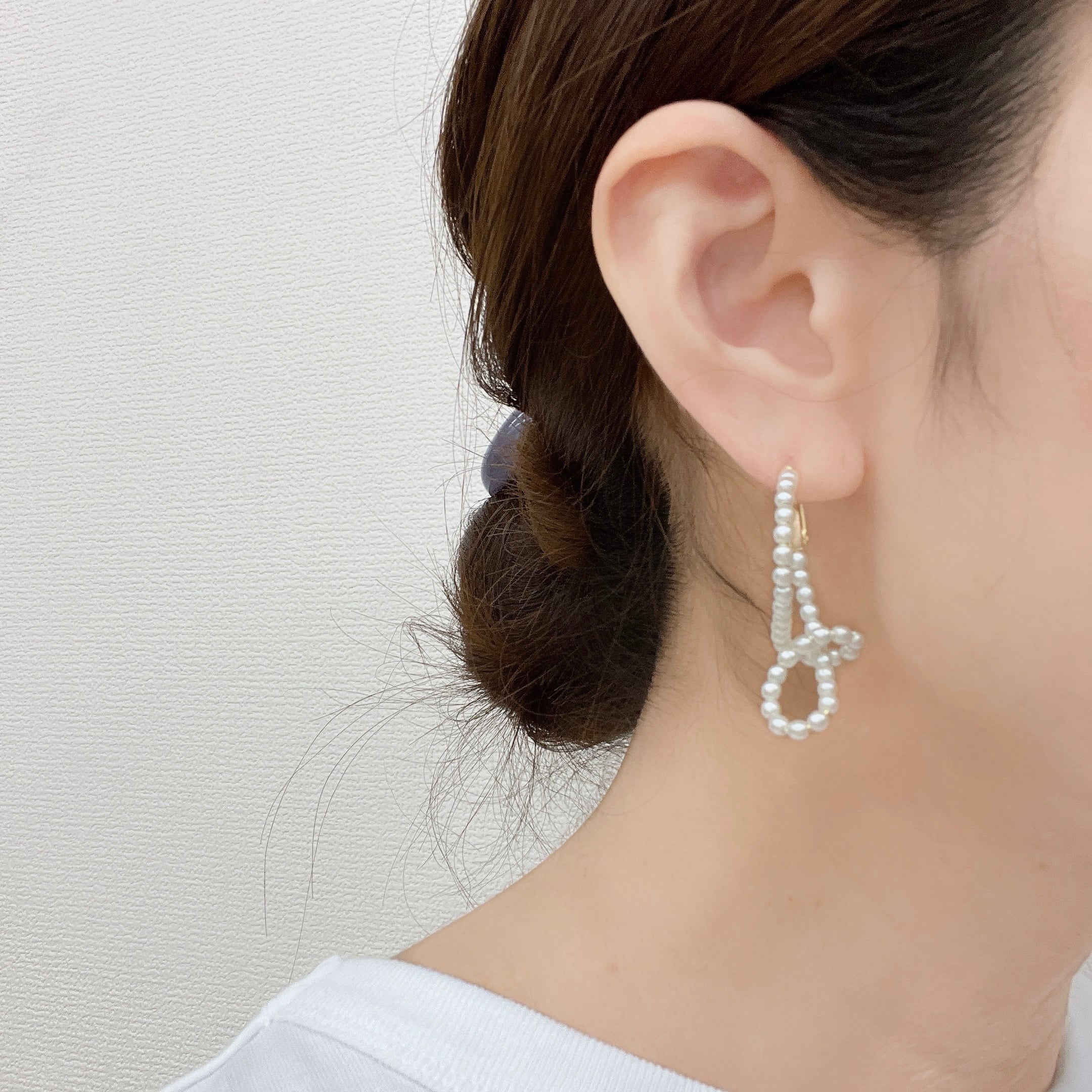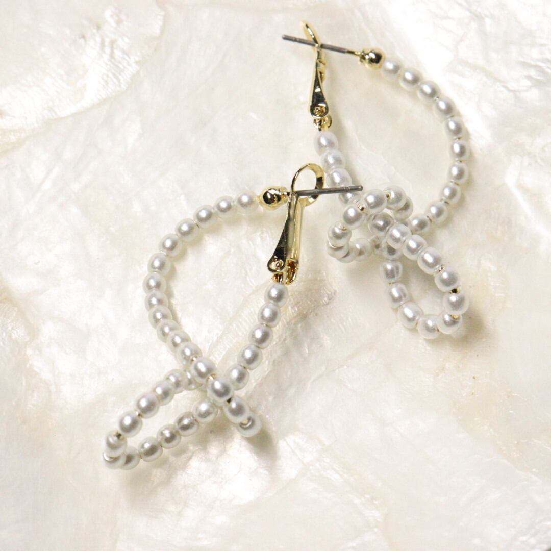 つぶつぶパールをねじったデザインが一見、リボンにも見えて大人可愛い雰囲気に