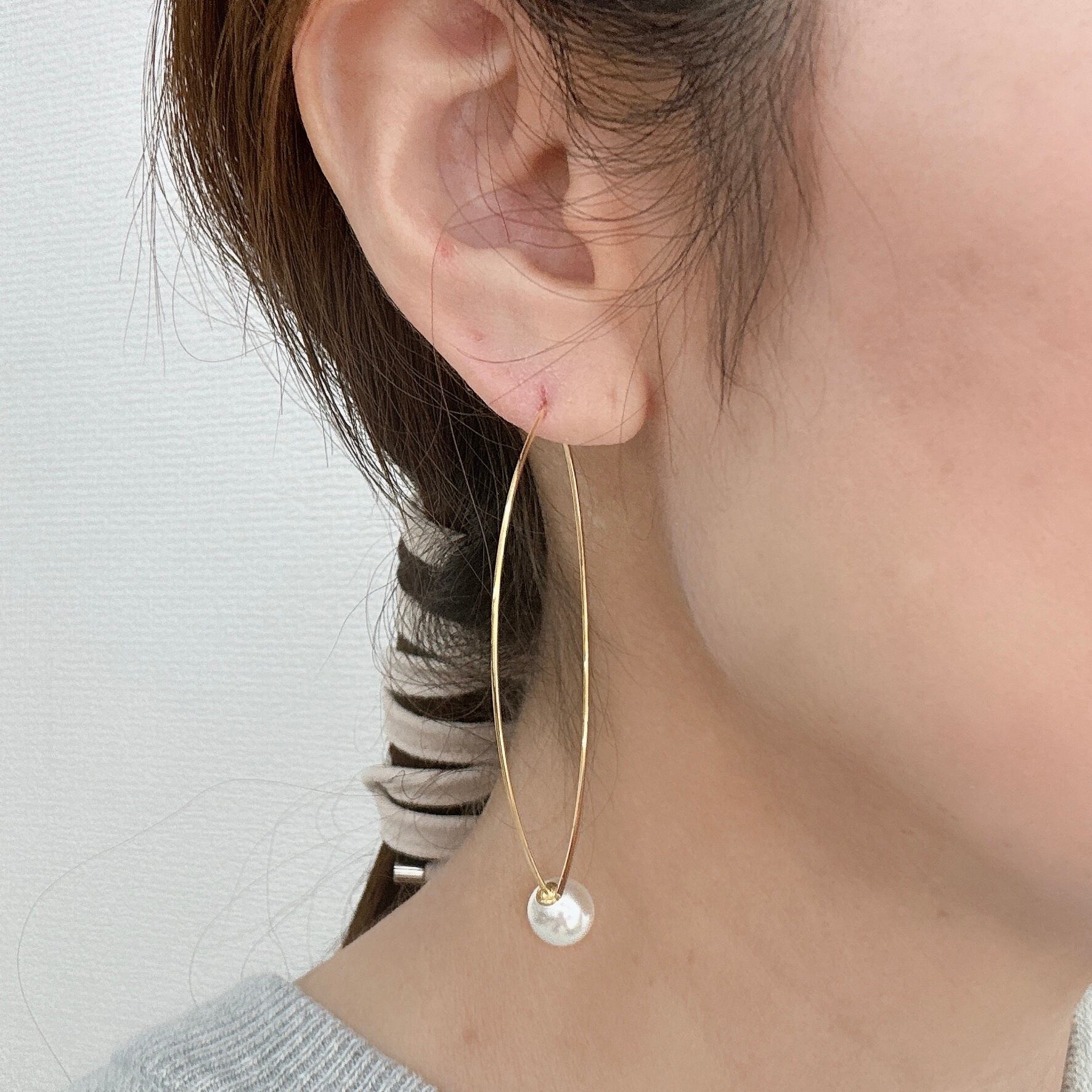 ワイヤーパールピアス バックピンなし 引っかけるだけの簡単装置 韓国ピアス bittersweet