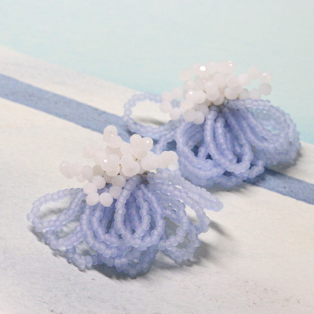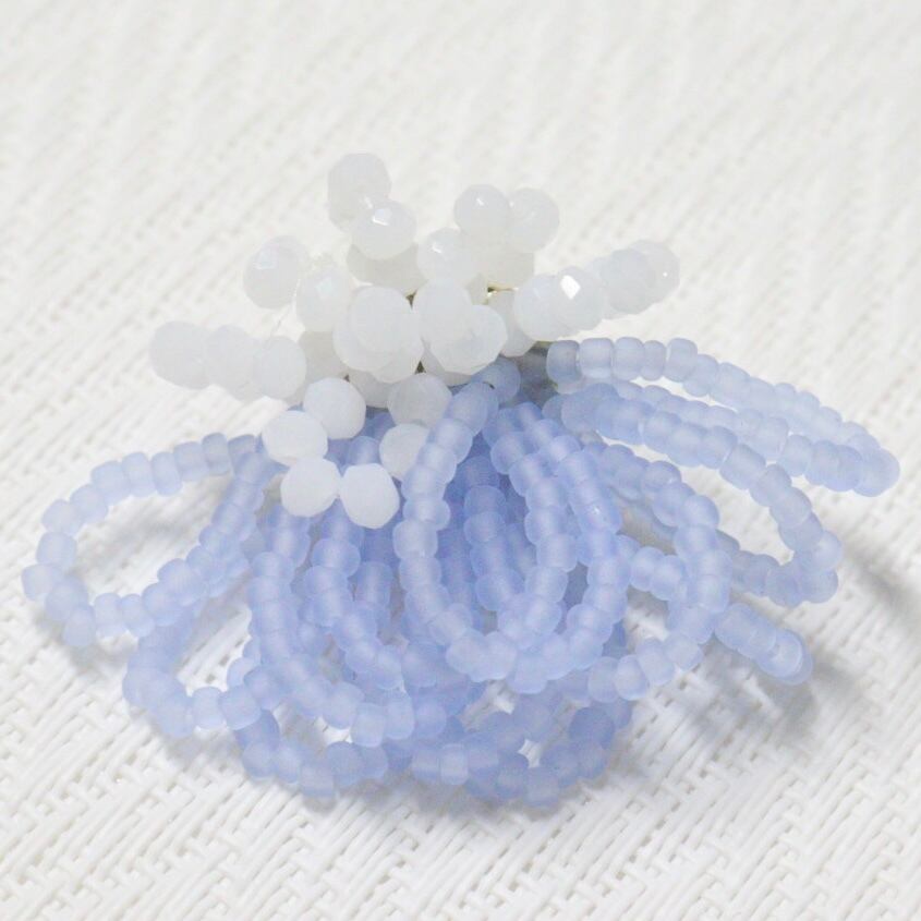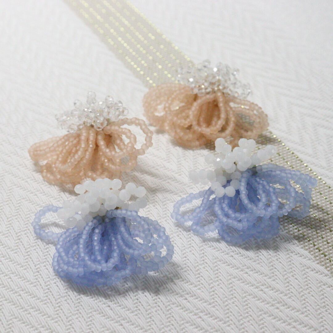 ピンクはクリアビーズ、ブルーはクリアホワイトのビーズのデザインとなっております。